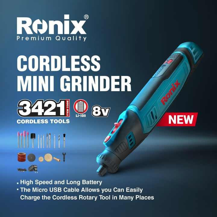 فرز مینیاتوری شارژی 3421 رونیکس مجهز به یک موتور DC 8 ولت است که سرعتی بالغ بر 30000 دور در دقیقه تولید کرده و به ابزارگیر 3.2 میلی متری خود منتقل می کند. سرعتی که در 5 حالت مختلف، در بازه 5000 تا 30000 دور در دقیقه و متناسب با سطح کار شما قابل تنظیم است. موتور این دستگاه با یک باتری لیتیوم یون با ظرفیت 2 آمپرساعت تغذیه می شود. یک باتری مقاوم و بادوام که با فست شارژر ارائه شده همراه خود در 60 الی 70 دقیقه به صورت کامل شارژ می شود و در طول یک ساعت به صورت بی وقفه 2 آمپر جریان ایجاد می کند. در فرز مینیاتوری 3421 ، شفت بدون واسطه و گیربکس به ابزارگیر یا کولت متصل می شود و در قسمت شفت خود مجهز به قفلی است که با ثابت نگه داشتن متعلقات مختلف و ایجاد امکان تعویض آسان و سریع آنها به افزایش راندمان فعالیت کاربر کمک کرده و به علاوه ایمنی کاربر را تضمین می کند. فرزهای مینیاتوری با توجه به فعالیتی که انجام می دهند و ماهیت اصلی خود، اندازه ای کوچک و وزنی بسیار متناسب دارند تا به راحتی در دست جا گرفته و بدون کوچکترین ایجاد خستگی برای کاربر مدت ها به کار خود ادامه بدهند. 3421 نیز از این قاعده مستثنی نبوده و بدنه ای جمع و جور و خوش دست با تنها 0.4 کیلوگرم وزن دارد که با رابر ضدتعریق و ضدلغزش روکش شده و در برابر انواع ضربات و سقوط احتمالی از دست کاربر بسیار مقاوم است.