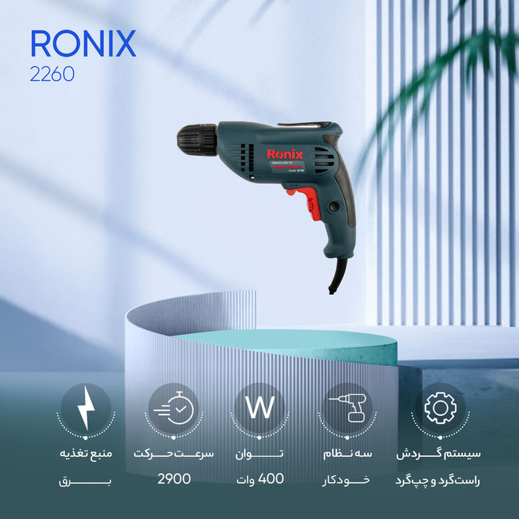 دریل برقی مدل 2110 یک دستگاه ساده، کوچک و مناسب برای استفاده در منزل یا محل کار است. این محصول با برند «رونیکس» (Ronix) تولید و به بازار عرضه میشود. 2110 به یک موتور تک سرعتی مجهز شده و قابلیت گردش به طرفین را دارد. برای این محصول یک سهنظام خودکار در نظر گرفتهاند و برای تعویض مته نیاز به استفاده از هیچ نوع ابزاری ندارید. این مدل را شرکت ایرانی رونیکس تولید میکند. این شرکت مدتی است که به ساخت و عرضهی ابزارهای مختلف اشتغال دارد. موتور در نظر گرفتهشده برای مدل 2110، با قدرت 400 وات عمل میکند. سرعت گردش این دریل تا 2900 دوربردقیقه میرسد. این سرعت گردش با استفاده از پیچ قرارگرفته روی شستی تنظیم میشود. علاوه بر این جهت گردش دریل هم بهصورت راستگرد و هم بهصورت چپگرد، امکانپذیر است. از این دستگاه برای سوراخکاری اجسام و قطعات مختلف چوبی یا فلزی استفاده میکنند. حداکثر قطر سوراخکاری این دستگاه در چوب و فلز به ترتیب 25 و 10 میلیمتر است. ویژگی این دستگاه استفاده از سهنظام خودکار در تولید این محصول است؛ بهعبارتدیگر برای تعویض مته، نیازی به استفاده از آچار ندارید. همچنین یک گیره پلاستیکی روی دستگاه قرارگرفته که از آن برای اتصال دستگاه به کمربند استفاده میکنند. این دستگاه 1.5 کیلوگرم وزن دارد. با توجه به افزایش اشتیاق افراد جامعه به انجام خودکفای کارهای فنی منزل و محل کار، تهیهی ابزارهای موردنیاز برای این موضوع هم به تنوع بسیار زیادی انجام میشود. ازجملهی ابزارهایی که امروزه در منازل و مغازههای مختلف میبینیم، دریل برقی یا شارژی است. این دستگاه برای سوراخکاری اجسام مختلف به کار میرود. دریل برقی مدل 2110 رونیکس یک دریل برقی ساده با قدرت 400 وات است که سرعت آن حداکثر تا 2900 دوربردقیقه تنظیم میشود.