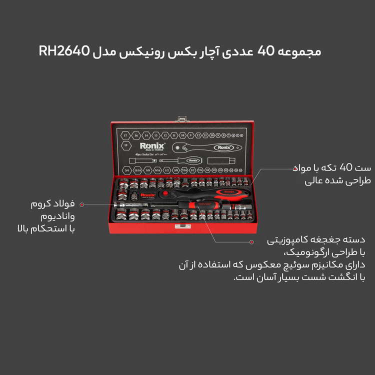 مجموعه 40 عددی آچار بکس رونیکس مدل RH2640