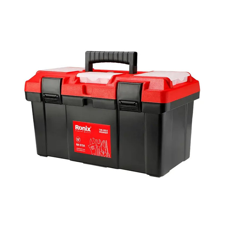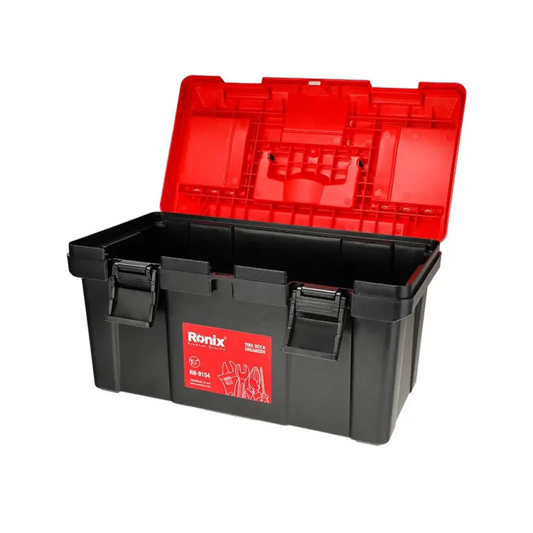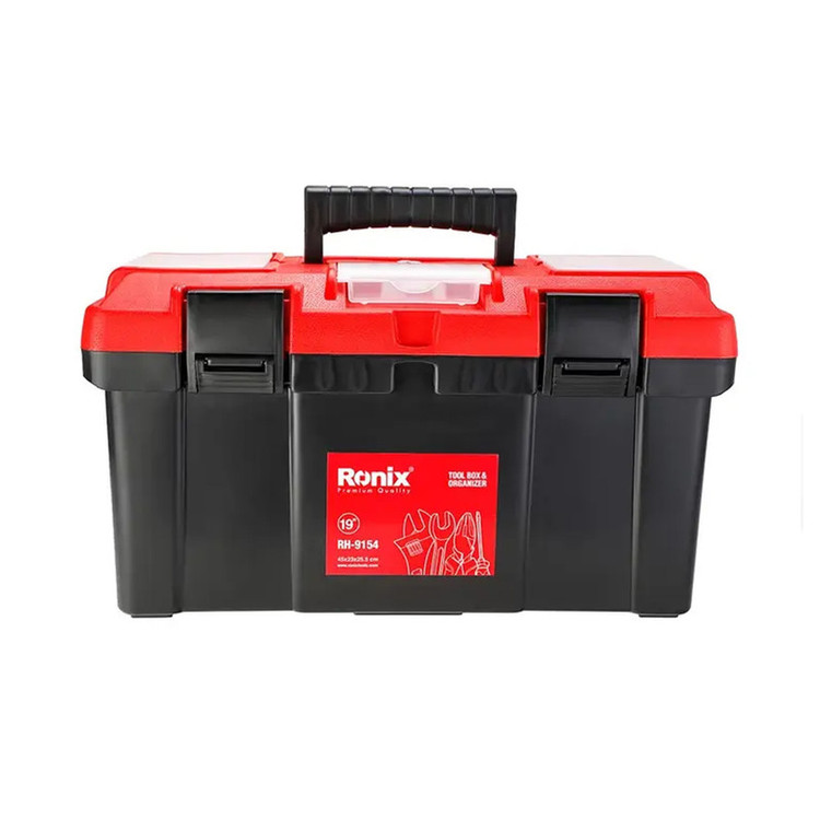 این جعبه ابزار تولید شده از مواد اولیه با کیفیت و همچنین بدنه مقاوم و نشکن جهت کاربری های طولانی مدت میباشد . طراحی منحصر به فرد در قسمت بندی های روی درب جعبه ابزار و نهایت کیفیت در اتصال اجزای مختلف میباشد . همچنین مجهز به لولاهای بادوام و مجهز به سینی پلاستیکی برای نگه داشتن آچار، چکش و ابزارهای بلند و مجهز به قفل پلاستیکی مقاوم و روان میباشد و همچنین این محصول ساخت کشور ایران میباشد . سایز این محصول در محصولات رونیکس بزرگترین سایز جعبه ابزار میباشد و سایز 19 اینچ میباشد .