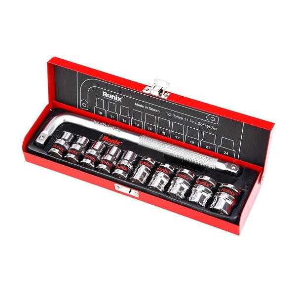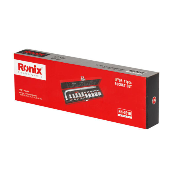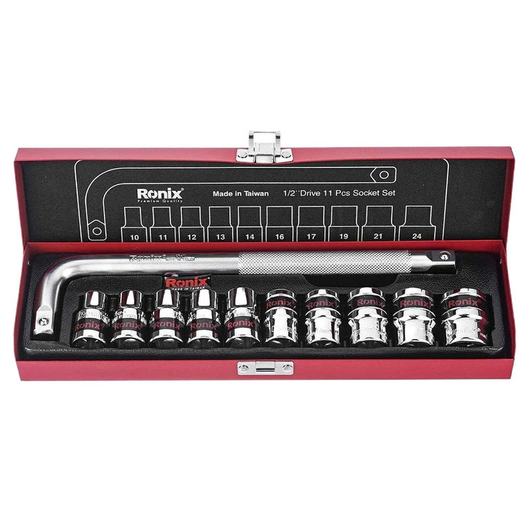 وکش آینه ای جعبه تمام فلزی مستحکم شامل بکس های 2/1 اینچی با سایز های 10، 11، 12، 13، 14، 16، 18، 19، 21 و 24 میلی متر دسته کمکی L شکل