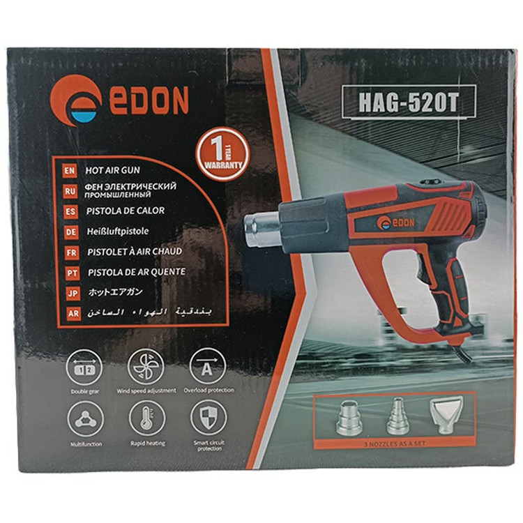 سشوار صنعتی دیمر دار ادون مدل 520T یک ابزار قدرتمند و کاربردی برای تولید هوای گرم با دمای قابل تنظیم است. این دستگاه مجهز به موتور قدرتمند و سیستم دیمر دار است که امکان تنظیم دقیق دما و سرعت جریان هوا را فراهم میکند. سشوار 520T معمولاً قابلیت تولید دمای بین 50 تا 600 درجه سانتیگراد را دارد و برای کارهای مختلف مانند خشککردن، شکلدهی پلاستیک، باز کردن رنگ و چسبزدایی مناسب است. طراحی ارگونومیک و وزن سبک آن، استفاده طولانیمدت را راحت و بدون خستگی میکند. این مدل برای مصارف صنعتی، کارگاهها و مصارف خانگی ایدهآل است.