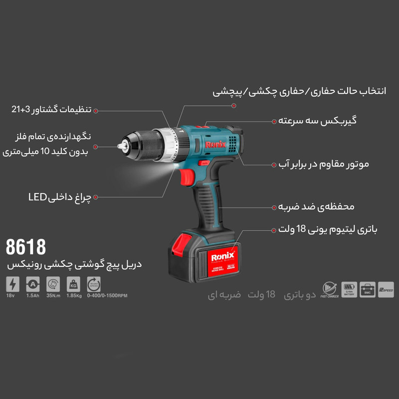 دریل پیچ گوشتی چکشی رونیکس مدل 8618