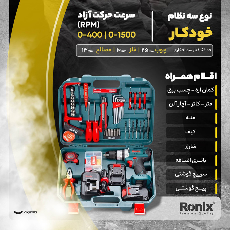 دستهبندی: دریلوزن: 1.33 کیلوگرمنوع دریل: دریل چکشی , دریل پیچگوشتی شارژیکاربری: خانگیابعاد: 30x20x35 سانتیمتر