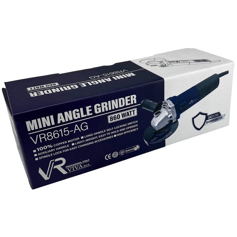 مینی فرز دسته کوتاه ویوارکس مدل VR8615-AG با داشتن موتور قدرتمند با توانی معادل 860 وات قادر است تا سرعت چرخشی برابر با 11500 دور بر دقیقه در حالت آزاد را تامین نماید. بلبرینگهای بکار گرفته شده در این محصول از نوع صنعتی ضدغبار بوده که بواسطه بهره گیری از متریال اولیه با کیفیت در ساخت آن، بسیار مقاوم و با کیفیت بوده و دارای طول عمر بیشتری نیز میباشد. جنس سیم پیچ آن تماما مسی بوده که عمر مفید این ابزار را به طرز چشمگیری افزایش داده است. در طراحی بدنه این محصول به منظور افزایش بازده و بهره وری کاربران از کار با این ابزار، بدنه آن بسیار سبک و خوش دست شده (امکان کار با یک دست) تا با حفظ ارگونومی کاربران بتوانند با خیال راحت و بدون خستگی ناشی از کار ساعات طولانی به کار با این ابزار بپردازند.لازم به ذکر است که به منظور تسریع و تسهیل فرآیند تعویض صفحه به همراه این محصول یک آچار تعویض صفحه عرضه میگردد که با داشتن قفل شفت یا اسپیندال کارایی بیشتری نیز خواهد داشت و فرآیند تعویض صفحه دیگر کاری زمان بر نخواهد بود.