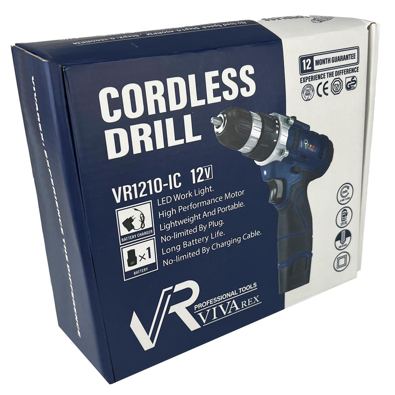 دریل پیچگوشتی شارژی 12 ولت ویوارکس مدل VR1210-1C دارای موتوری قدرتمند است که میتواند به حداکثر دور موتوری برابر با 1500دور بر دقیقه در حالت آزاد دست پیدا کند. تورکمتر 25 به اضافه حالت حالت مته که روی سه نظام دستگاه تعبیه شده به کاربران این امکان را میدهد که بنا به موقعیت بتوانند از قدرت های متفاوت این دریل شارژی استفاده کنند. و دکمه ی مجزا 2 سرعته تعبیه شده برای این محصول کاربران را قادر میسازد تا با توجه به نیاز خود بتوانند سرعت و قدرت گردش این دریل را تنظیم نمایند. به تمامی امکاناتی که اشاره شد کلید گازی این محصول برای تنظیم سرعت را اضافه کنید و کلید تغییر حالت گردش چپگرد-راستگرد تعبیه شده برای این محصول به کاربران کمک میکند تا بدون هیچ مشکلی به باز و بستن پیچها و سوراخکاری در متریالهای مختلف بپردازد. از دیگر مزایای این محصول میتوان به نمایشگر شارژر باطری روی بدنه و چراغ ال ای دی برای روشن کردن محل سوراخکاری و داشتن یک باتری لتیومی 12 ولت و شارژر سوزنی اشاره کرد. سه نظام تعبیه شده برای این محصول از نوع اتوماتیک با سایز 10 میلیمتری بوده که با دقت بالایی ساخته شده است.