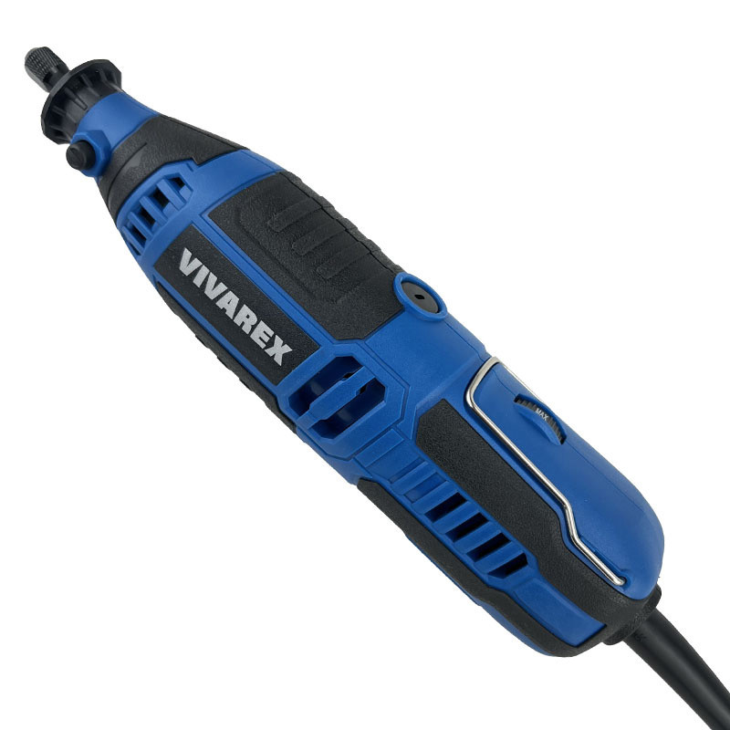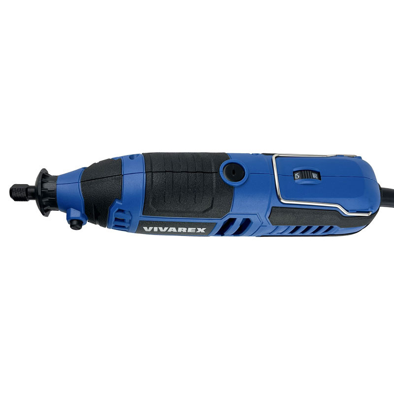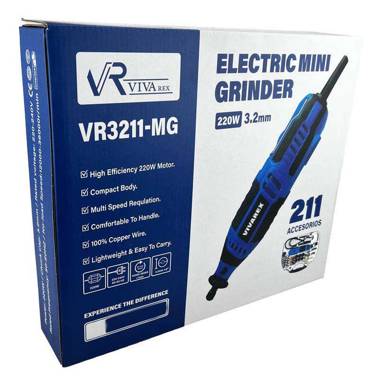 فرز مینیاتوری ویوارکس مدل VR3211-MG مجهز به موتوری با توان 220 وات است که با ولتاژ 220 – 240 ولت و فرکانس 50 – 60 هرتز کار می کند. سرعت این فرز در حالت آزاد 12000 تا 36000 دور در دقیقه و سایز کولت این محصول 3.2 میلی متر می باشد. فرز مینیاتوری ویوارکس مدل VR3211-MG دارای دیمر 6 حالته نیز می باشد که با تنظیم سرعت به کارایی محصول کمک شایانی می کند. طراحی این محصول ارگونومیک بوده و برای کارهای طولانی بسیار مناسب است. در بدنه این محصول از پلاستیک استفاده شده که علاوه بر وزن کمتر از لغزش جلوگیری می کند و انحنای تعبیه شده در بدنه محصول به گردش هوا و کارکرد بهتر موتور محصول کمک می کند. این فرز برای کار روی مواد مختلف مانند چوب، فلز، پلاستیک، شیشه، سرامیک، جواهرات و حتی پوست مناسب است. از این ابزار میتوان در پروژههای چوبکاری، مدلسازی، تعمیرات الکترونیکی، جواهرسازی، هنرهای دستی و حتی مراقبت از خانه استفاده کرد. طراحی ارگونومیک و وزن سبک، استفاده از این فرز را برای همه افراد راحت میکند. این دستگاه با استفاده از مواد مرغوب ساخته شده است و دوام بالایی دارد. این مدل نسبت به فرزهای مشابه، صدای کمتری تولید میکند و ارتعاش آن نیز کم است. این ویژگی برای محیطهایی که نیاز به سکوت دارند، مناسب است.